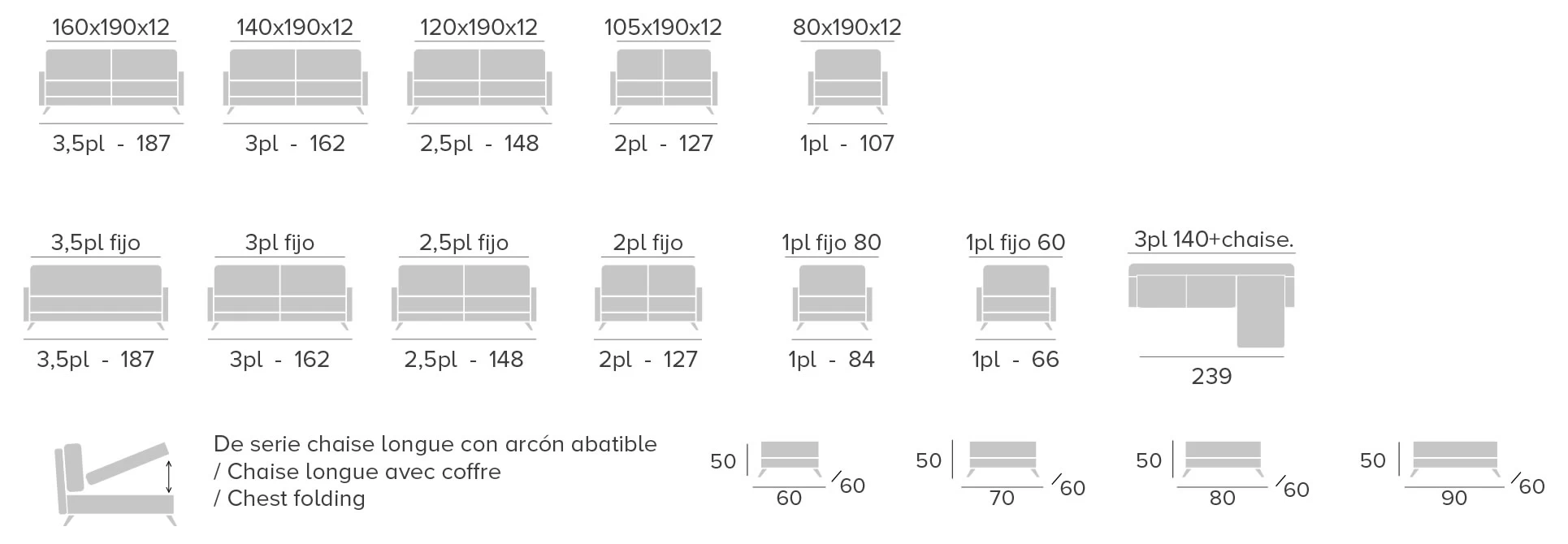 - Mattresess of 12 cm standard.