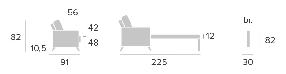 - Back: 20 kg soft foam rubber covered with fiber of 300 g.