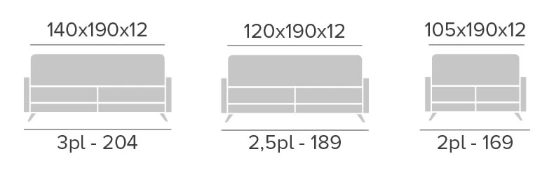 - Mattress: 30 Kg HR 190 cm long x 12 cm thick.