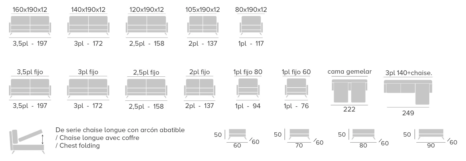 • Mattresess of 12 cm standard.