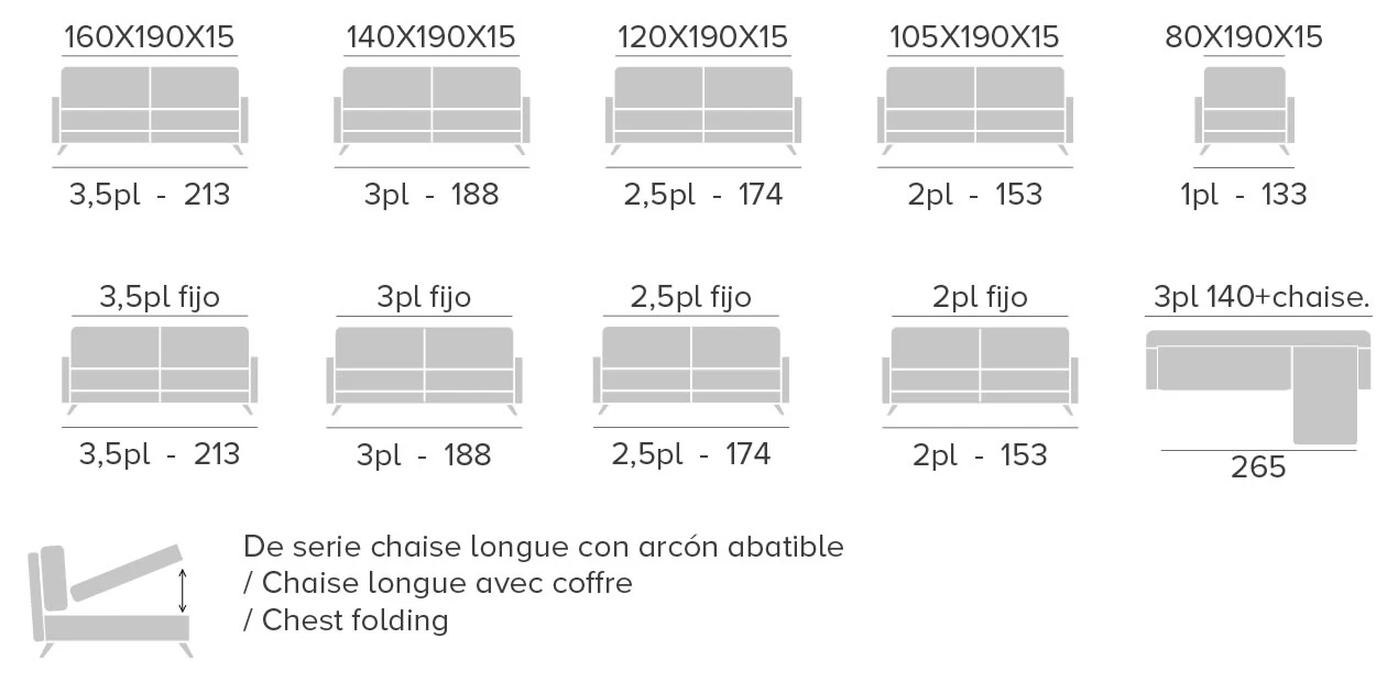 - Respaldo: Gomaespuma de 20 kg. supersuave recubierto de fibra de 195 gramos.