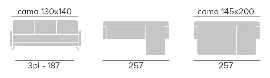 • Colchón: HR 30 kg forrado misma tela sofá.